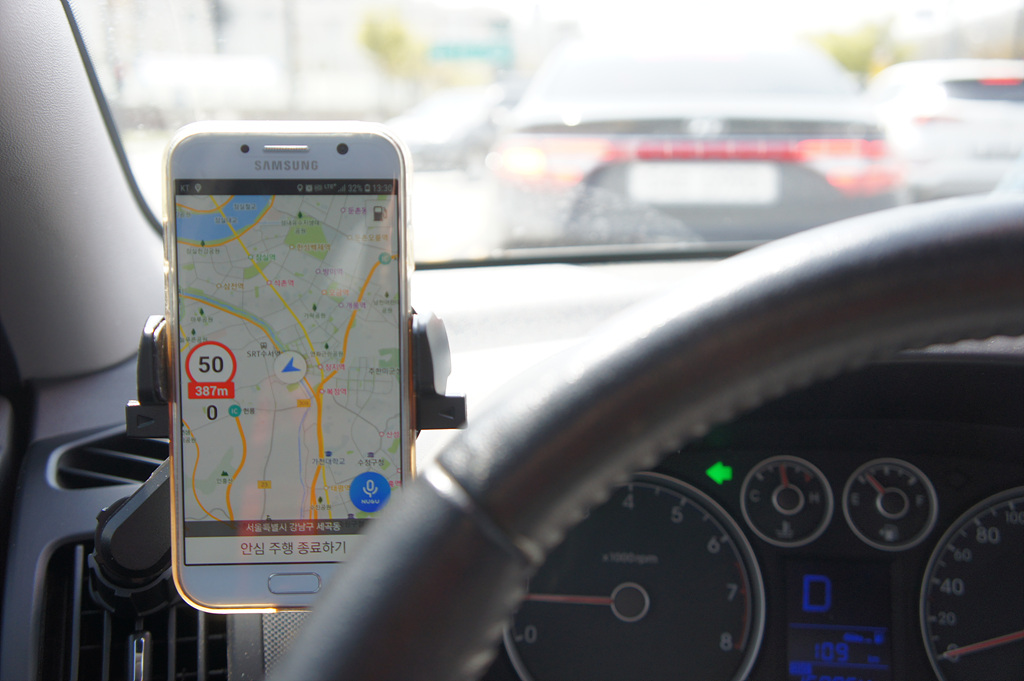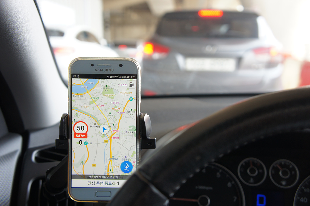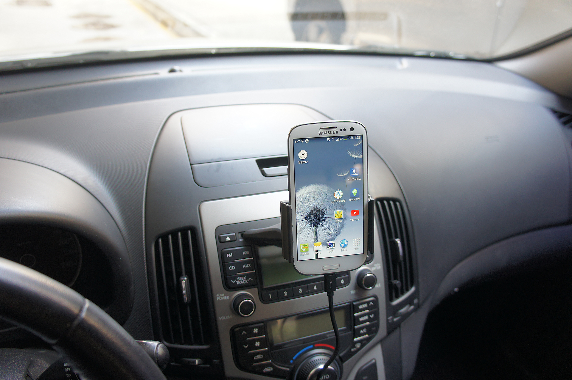 중간팔을 끼워서 폰의 위치를 송풍구에서 살짝 벗어나게 했습니다.