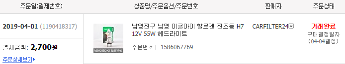 인터넷 최저가 남영전구 h7 주문. 1개 1300~1400원이에요.