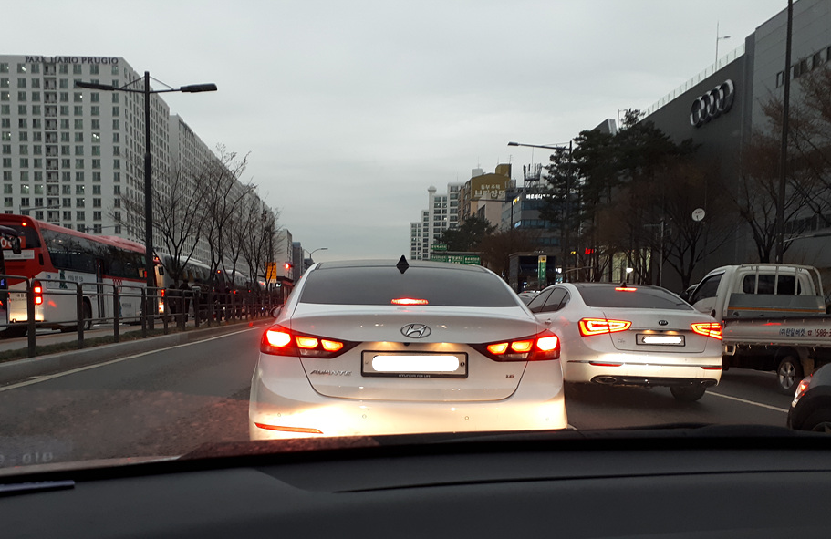 오른쪽 차선 차를 보니까 운전석쪽도 거의 동일한 높이로 세팅되어 있네요