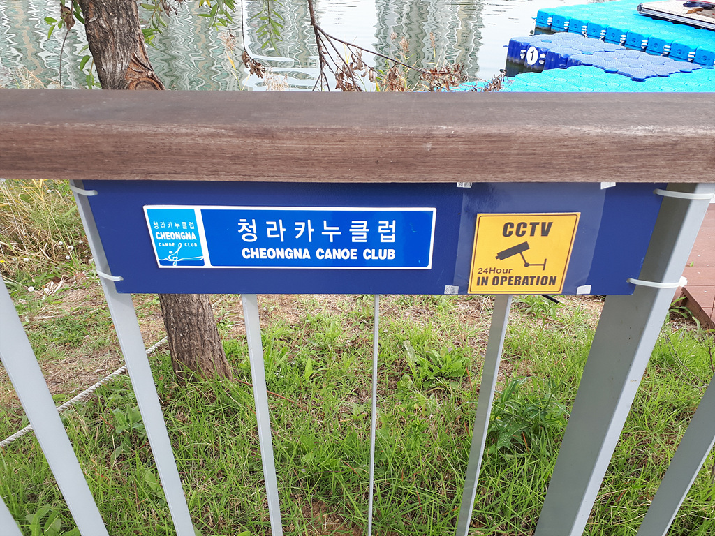 다리 위에서 오른쪽으로 보면 카약들이 폰툰 위에 있네요