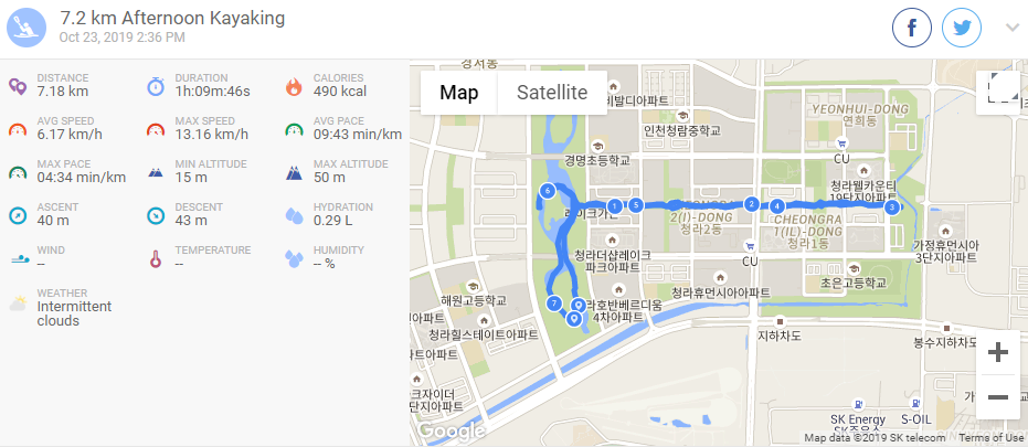 청라카누클럽 폰툰에서 커넬웨이 서쪽끝까지 갔다 오는데
