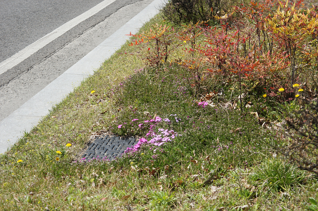 다리 아래에 꽃잔디 활짝피었네요