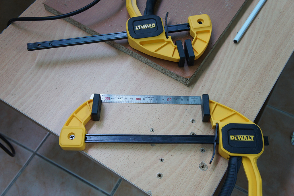 C형 클램프 하나로 잡고서 직소질을 하다가