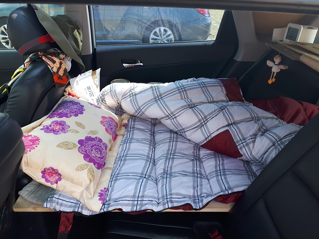 차박 침상 위에 깔아봤어요