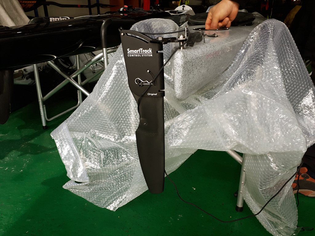 박스를 까고 바로 스마트트랙 러더 설치하는 모습이에요. 서프스키 전용 러더는 제거합니다