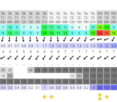바람방향 세기 구름의 양 주의할 날을 안내하고있어요