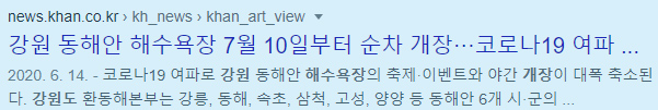 코로나 재확산으로 8월 22일 전국해수욕장 동시폐장했네요
