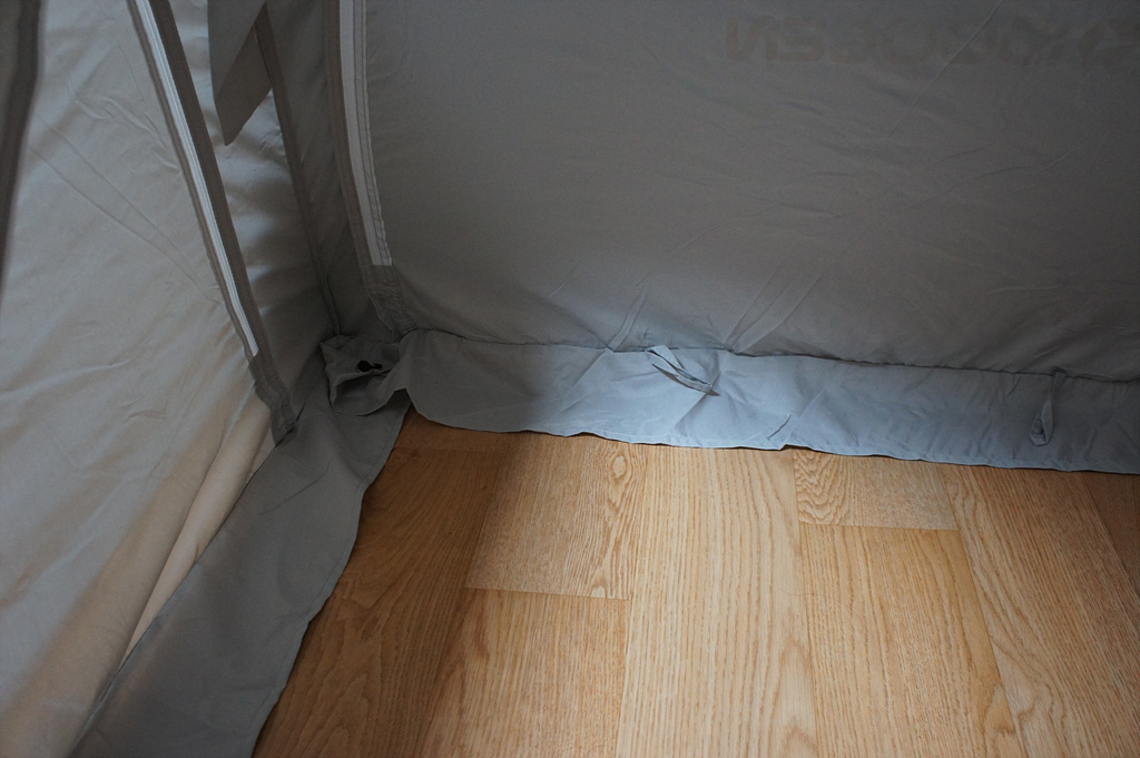 바닥이 없는 난방텐트 끝단은 이렇게 되어있어요