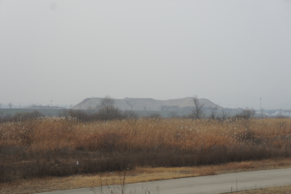 멀리 모래산이 있어요. 아마도 4대강 사업하면서 모아놓은 모래같아요.