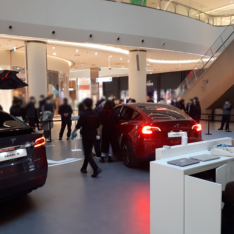 모델 Y가 전시된 위치는 롯데타워 건물1층이 아니고 롯데월드몰 롯데시네마 있는 동쪽끝이에요