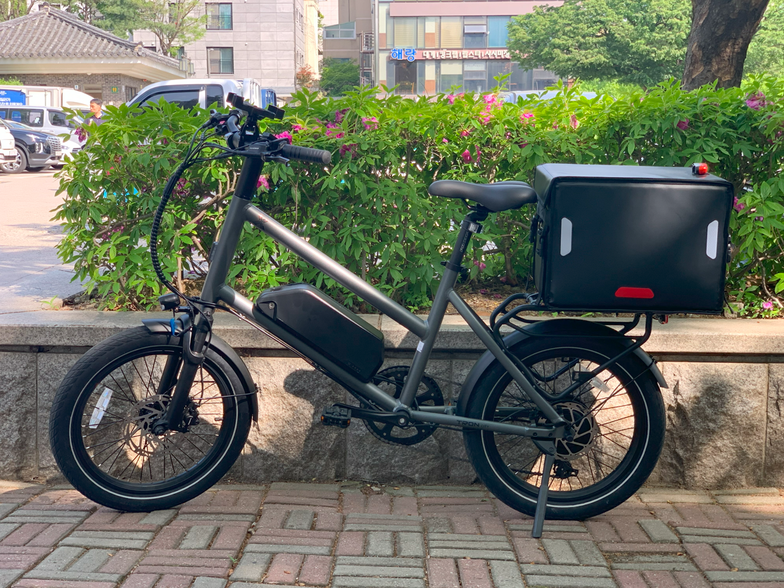 엑스트론 시티로 배달해보자. 토투 가방때문에 후미등 위치 조절