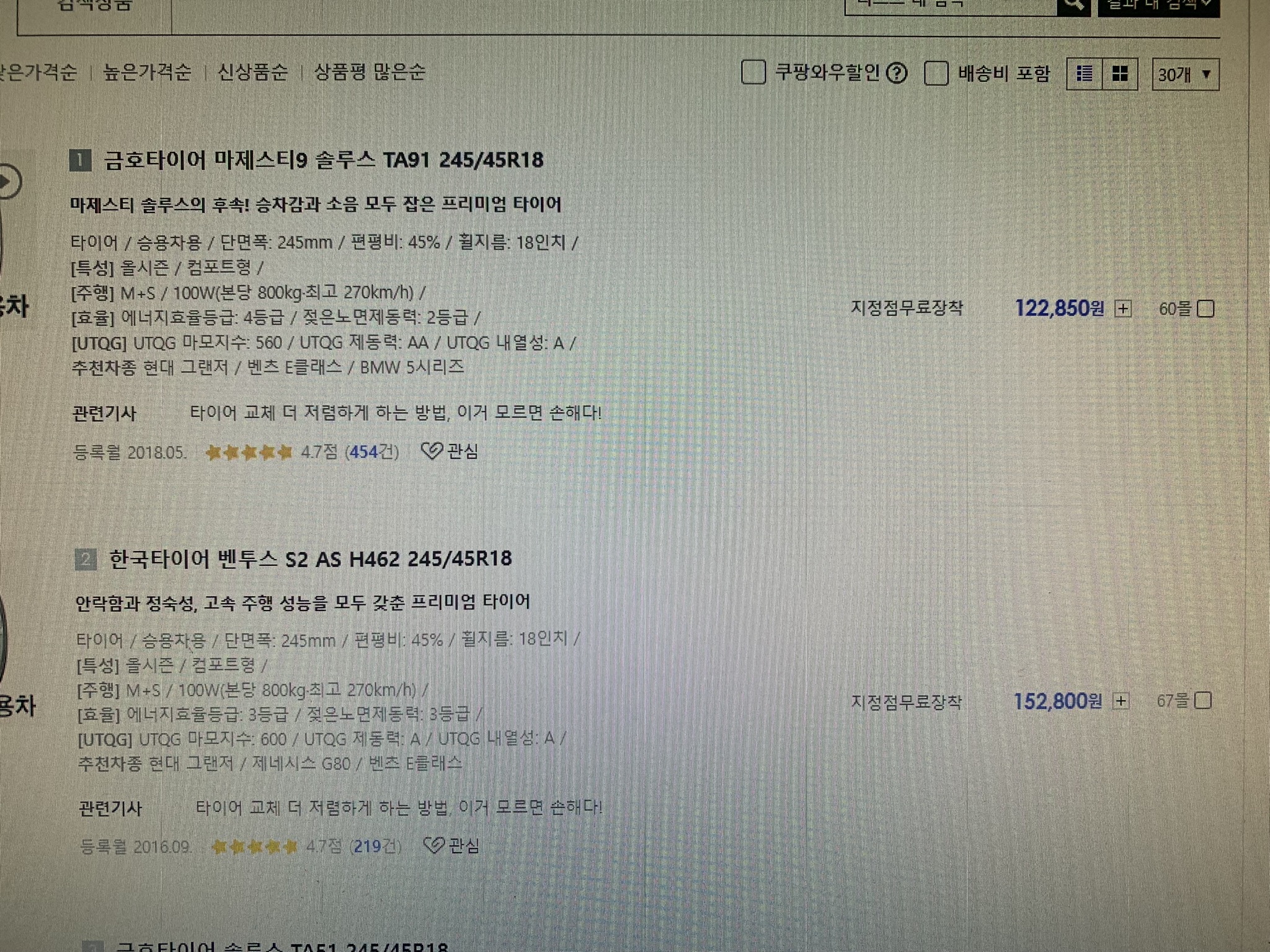 7만 5천까지 출고타이어 금호 마제스티를 사용했네요